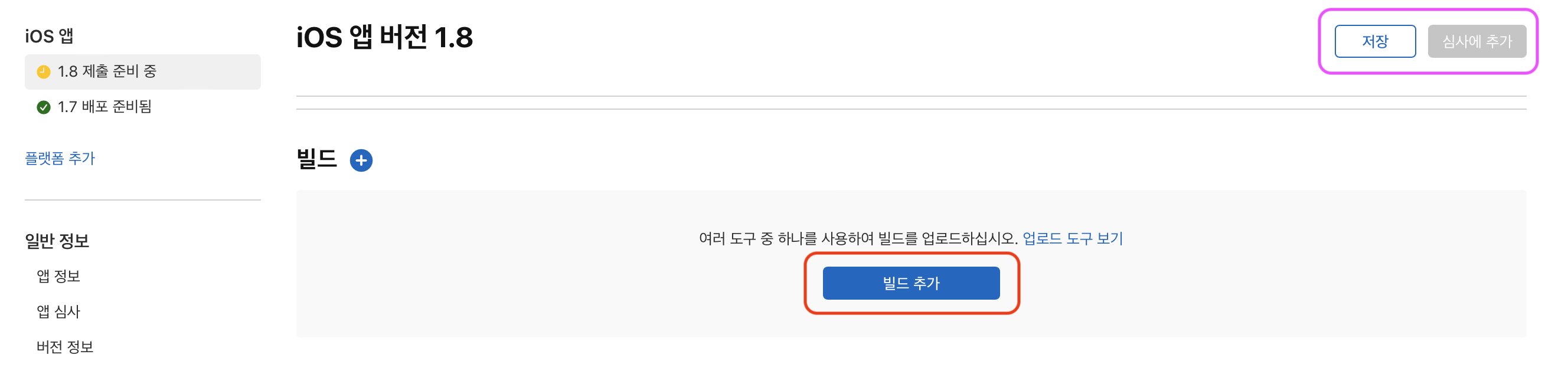 섹션에서 TestFlight에서 확인한 빌드 선택저장