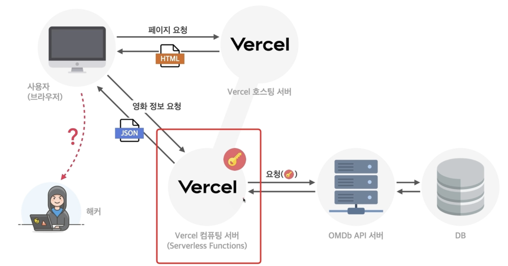 vercel은 기본적으로 호스팅 서비스이다. 우리가 깃헙과 프로젝트를 연결을 해서 npm run build로 만들어지는 dist라는 폴더를 가지고 있다가 사용자가 그 페이지에 접근하면 dist페이지에 있는 html 파일을 전달하고 사용자는 그 html에 연결되어있는 js나 css를 호스팅 서버를 통해서 추가적으로 가져올 수 있는 것이다.