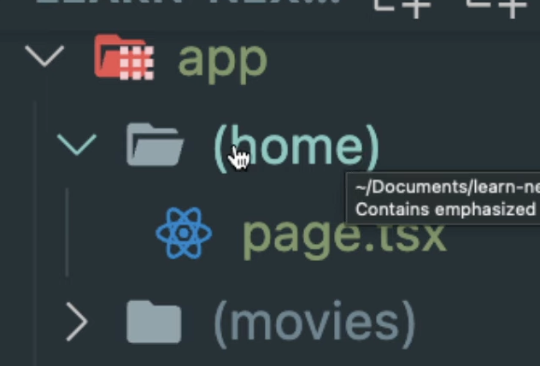 위와 같이 괄호안에 쓴 폴더이름은, URL에 영향을 미치지 않는다. /home, /movies 또한 생성되지 않는다. (괄호가 감싸고 있는한, 프레임워크가 그것을 무시하고 URL이나 어떤 것도 수정하지 않을 것이다