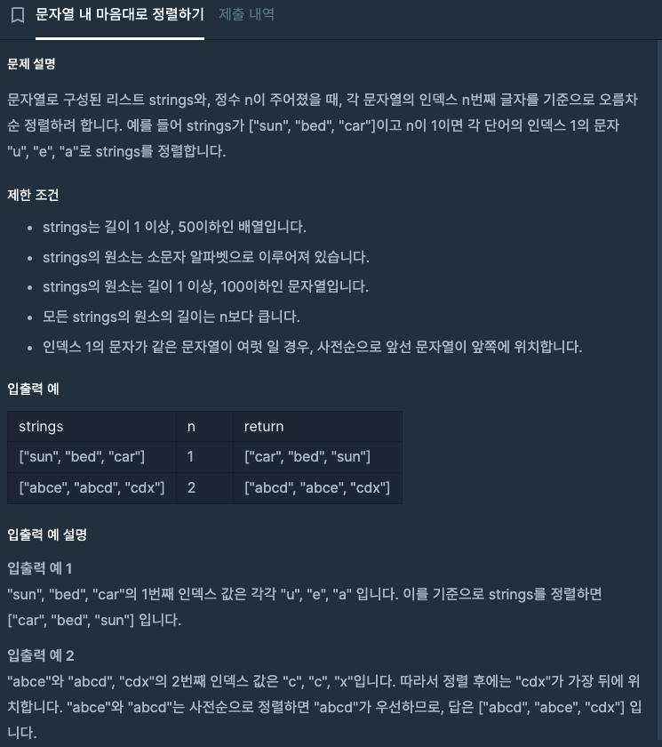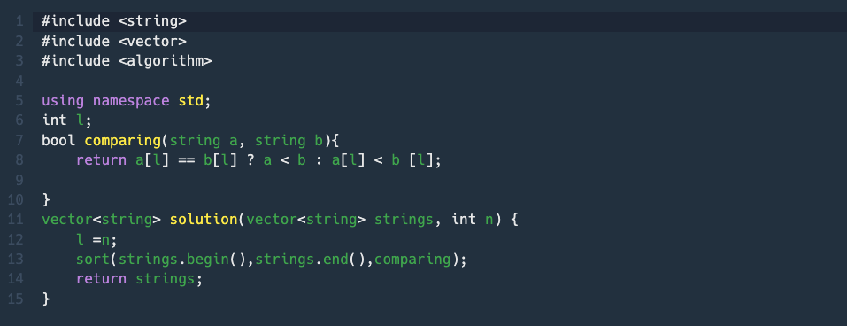 ->comparing이라는 함수를 이용해서 각 문자열의 n번째 글자들을 비교해서