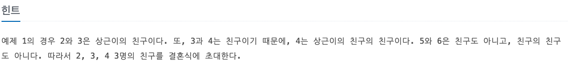 즉, 상근이의 친구,그리고 그 친구들의 친구까지만 결혼식에 초대한다.