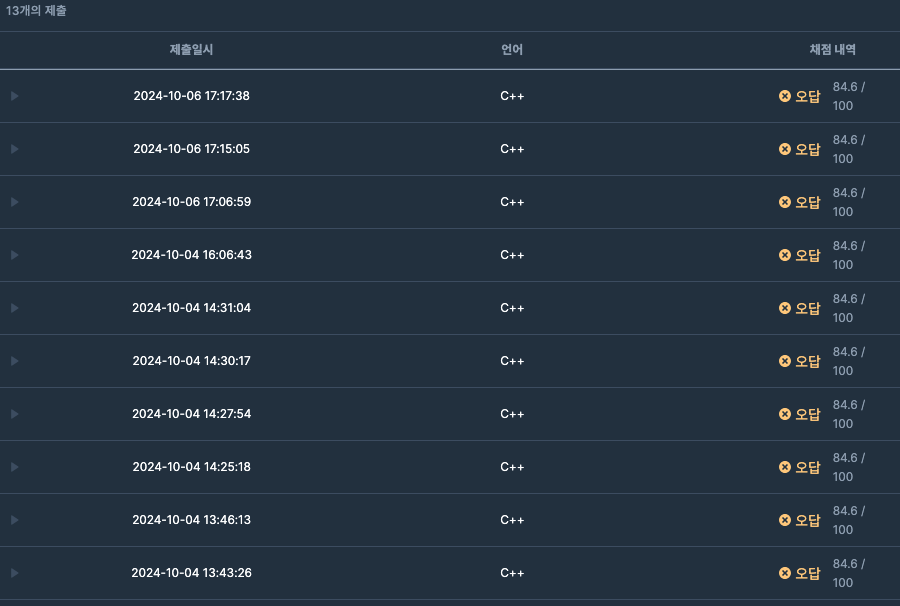 -> 몇 일 동안이나 테스트케이스 5,13번만 오답으로 나와서 헤맸는데 문제 설명에