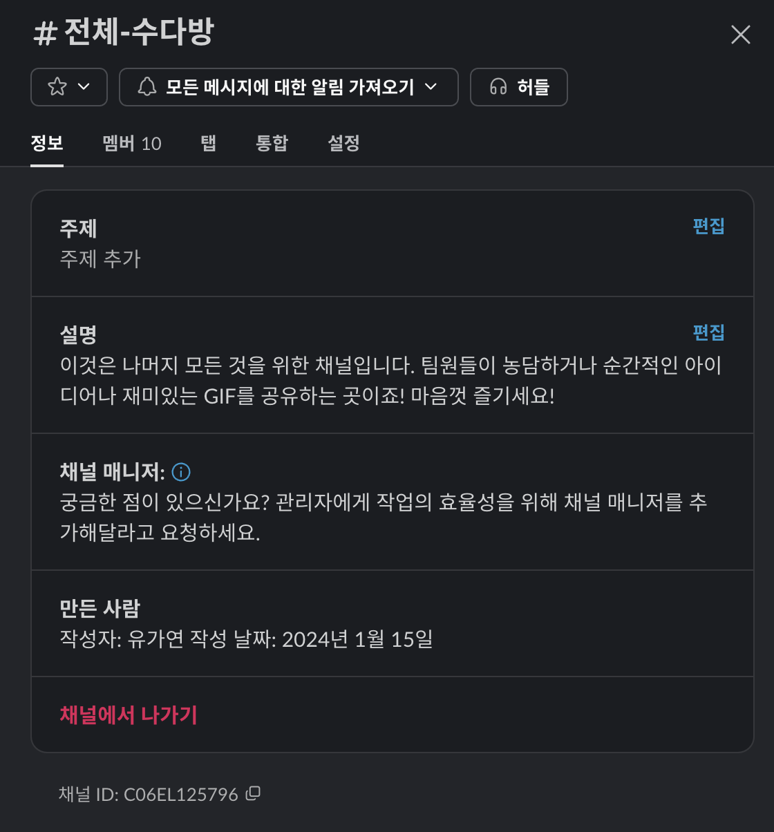 (참고로 channelId는 해당 채널 슬랙 GUI에서 `채널 세부정보 보기` 하단에 나타난다)