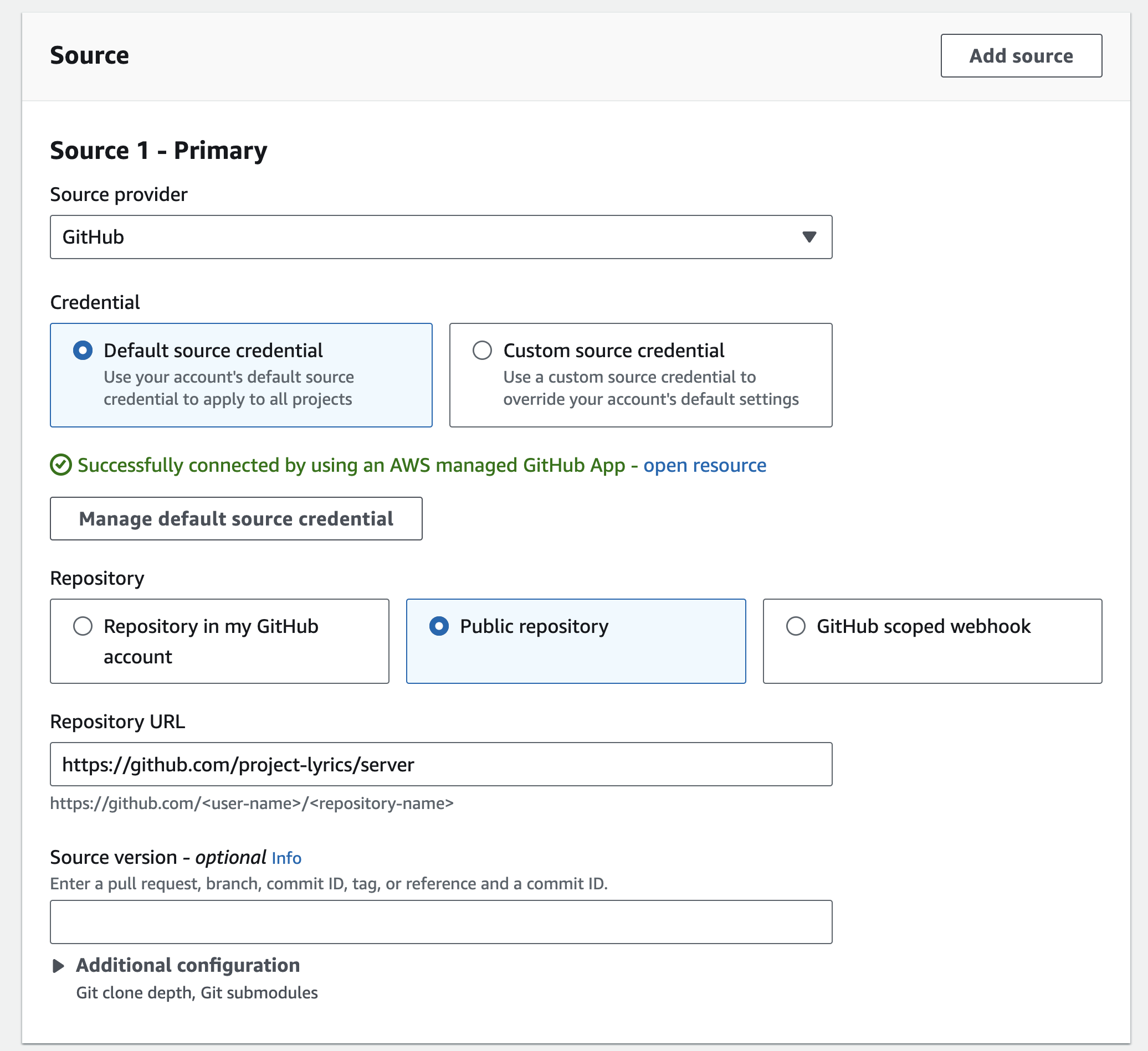 참고로, 하단의 source version을 통해 특정 브랜치를 가리키도록 설정할 수도 있다.