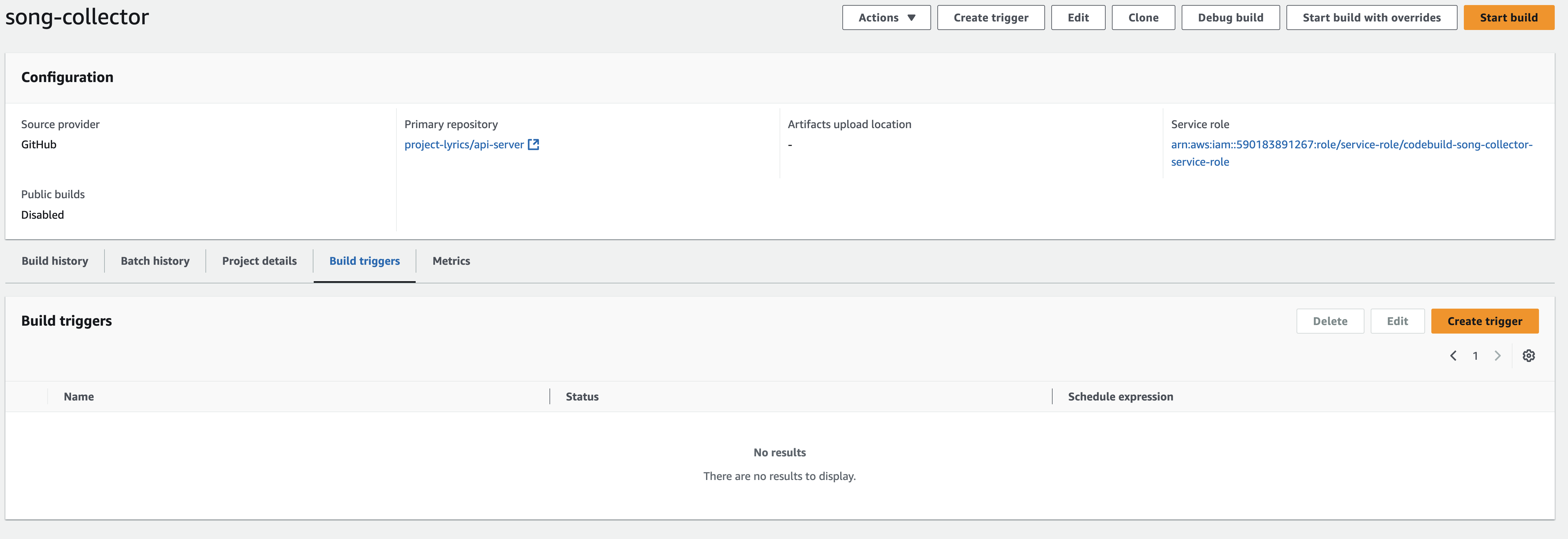 위에서 밝혔듯, 우리는 크론 작업을 위해 CodeBuild를 사용하는 중이다.