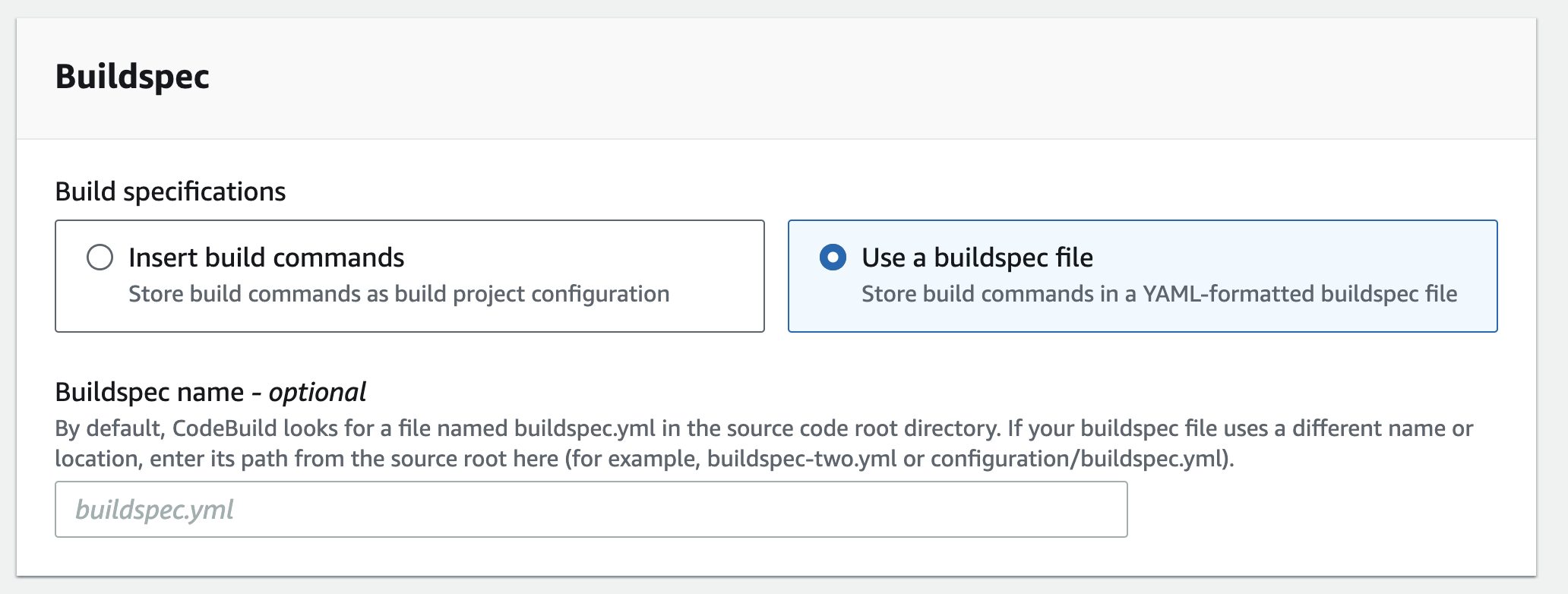 (참고로, 하단의 buildspec name을 통해 디렉토리 안의 buildspec 파일을 가리키도록 할 수 있다)