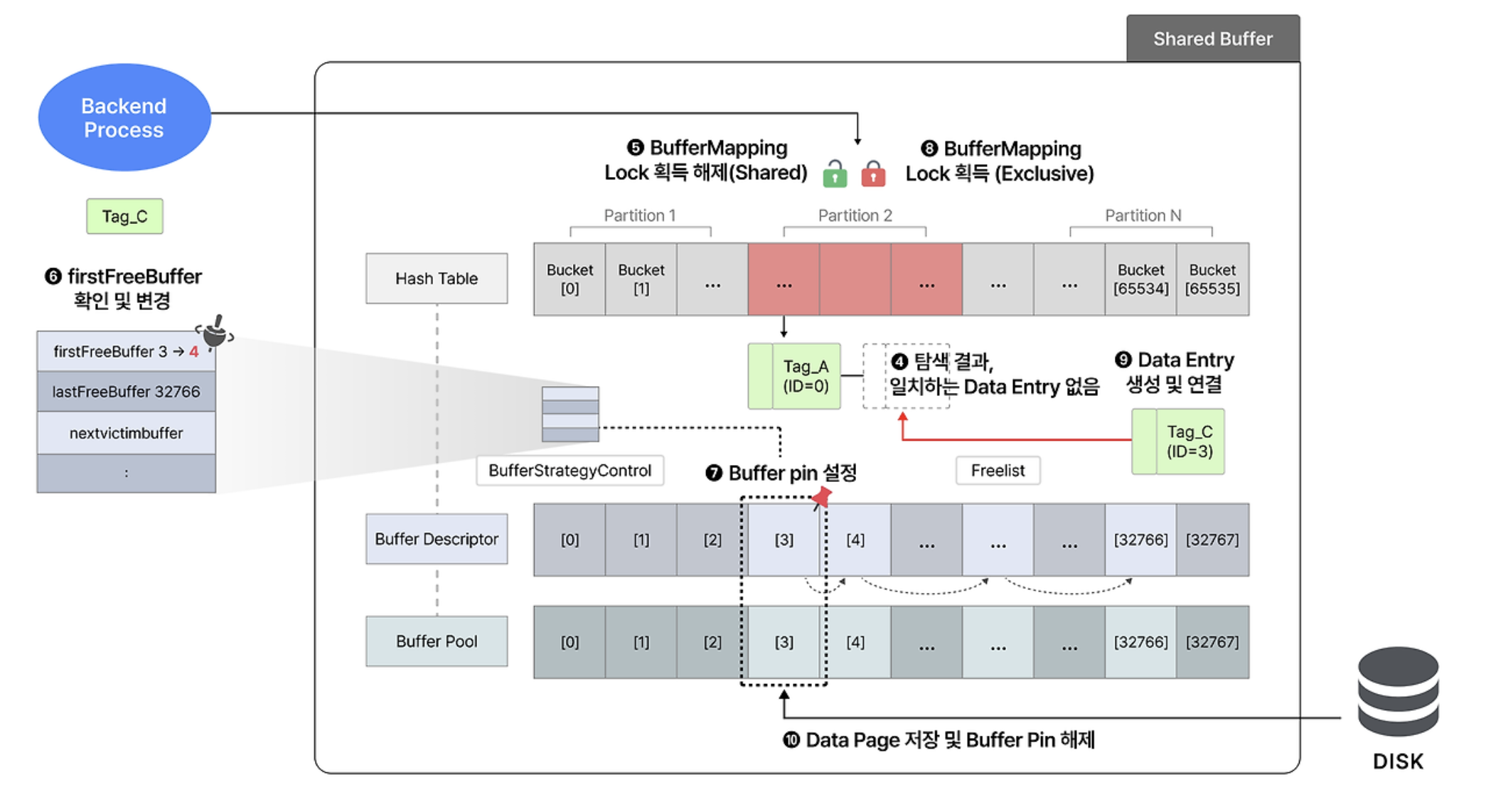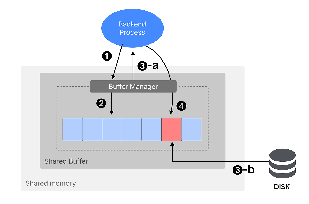그보다 중요한 건 디스크에서 읽은 데이터를 shared buffer 내 마땅한 공간에 저장하는 것이다.