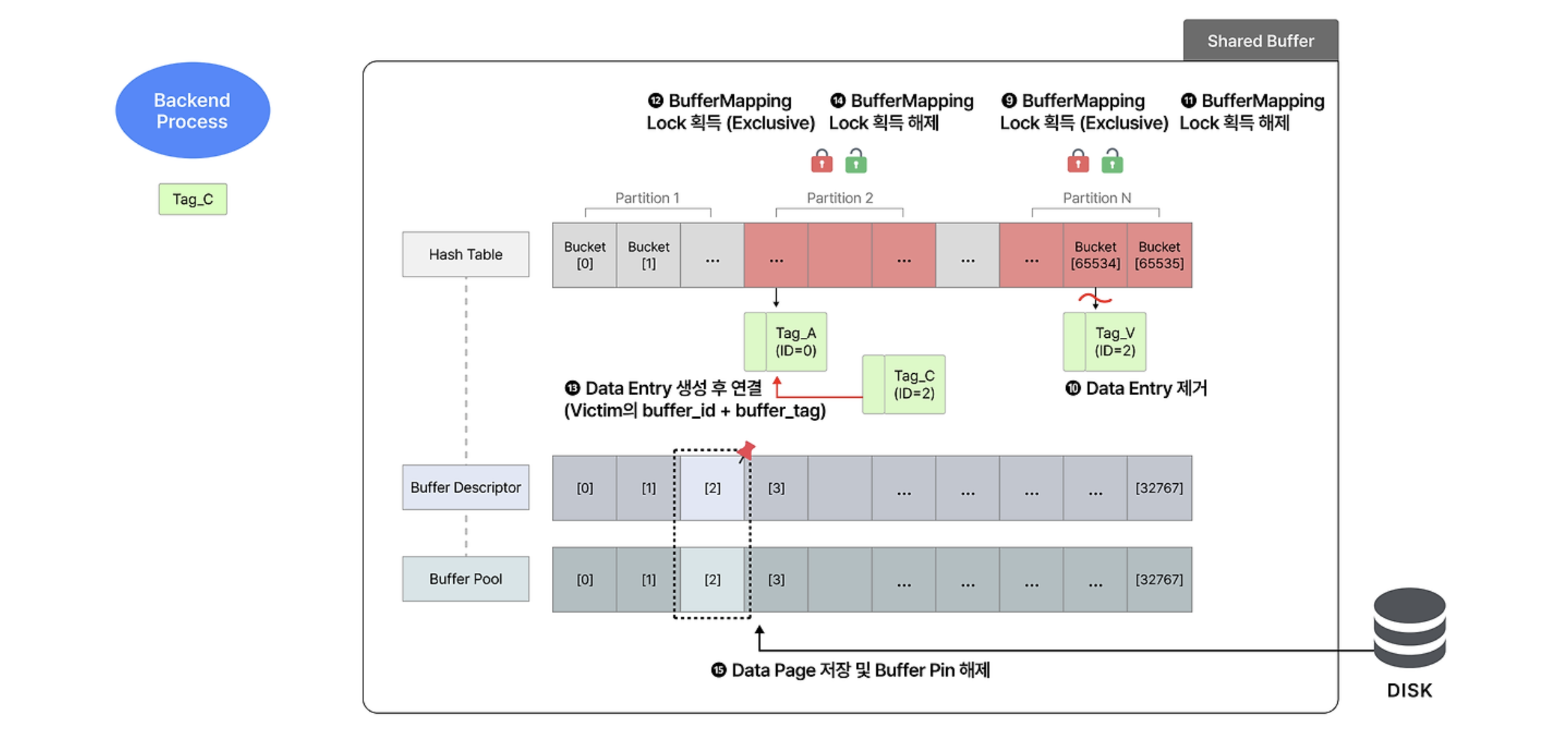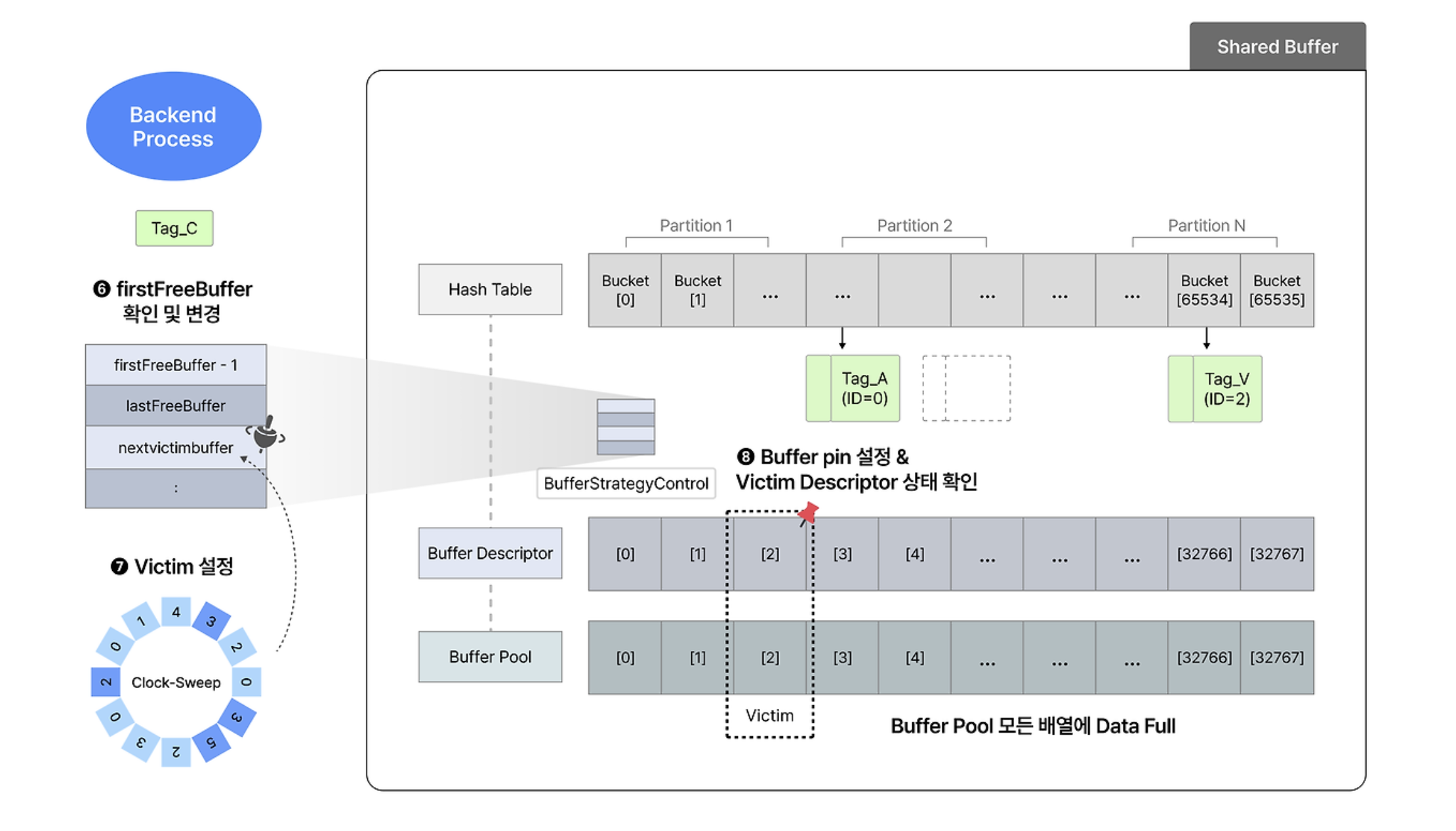 기존 buffer id + 새로운 buffer tag 값을 할당한다.디스크에서 page를 읽어 와서 buffer pool에 적재한 후 Buffer Pin을 해제한다.