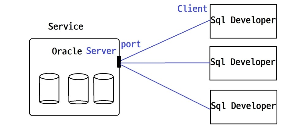 여러 사용자들은 sql 디벨로퍼라는 클라이언트 프로그램을 사용하여 동시에 오라클에 연결.