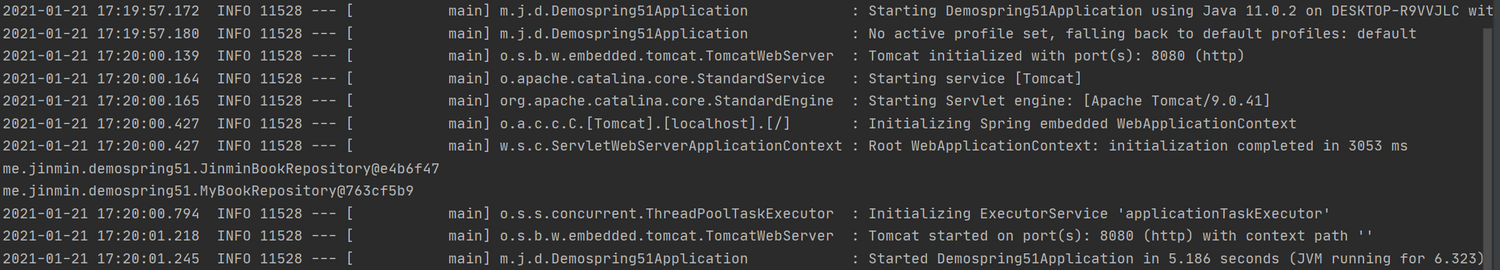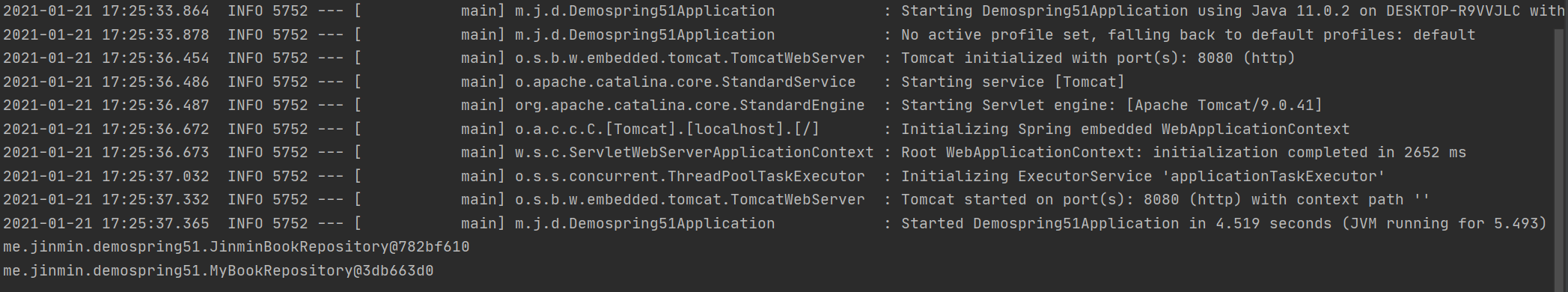 <bean id="bookRepository" class="me.jinmin.springdemoalone.book.BookRepository"/>