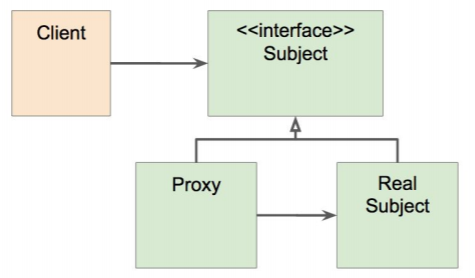 Client는 인터페이스 타입으로 Porxy 객체를 사용하고 프록시 객체는 원 타겟 객체를 참조하고 있다.
