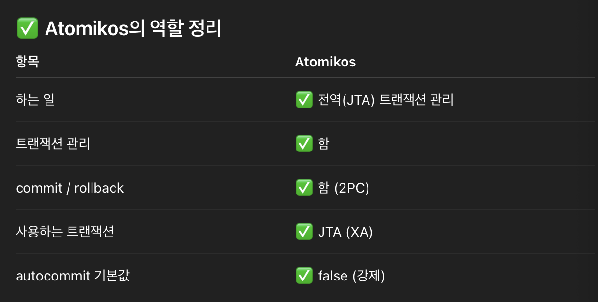✔ 커밋 / 롤백은 Atomikos가 수행
