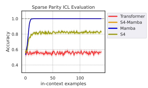 - Mamba outperforms Transformers in other complex tasks like sparse parity
