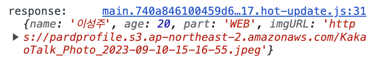 ,로 연결했을 때는 앞 뒤의 타입이 다른 타입이어도 상관없다. 따라서 response.data를 그대로 출력할 수 있다.