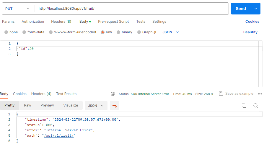 해당되는 id가 있으면 200, 없으면 500에러를 띄우는 것을 확인할 수 있다.
