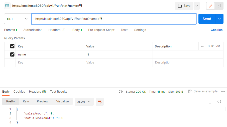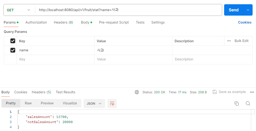해당되는 과일이 전부 팔렸거나 전부 팔리지 않았을 수도 있기 때문이다. 만약 coalesce(sum(price),0) 대신 sum(price) 라 적으면 null 500 에러가 발생하였다.