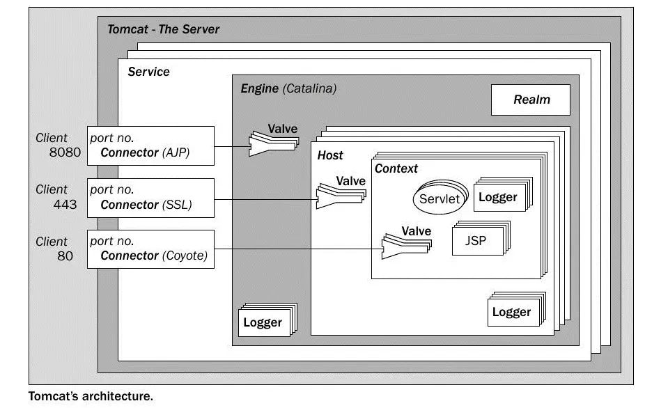 클라이언트와의 통신을 담당하는데, HTTP 요청을 받아들이고 처리하는 역할을 한다. 톰캣의 기본 커넥터는 HTTP/1.1 표준에 따라 클라이언트로부터의 요청을 처리한다. 또한, 커넥터는 특정 포트(기본적으로 8080)에서 요청을 기다린다.