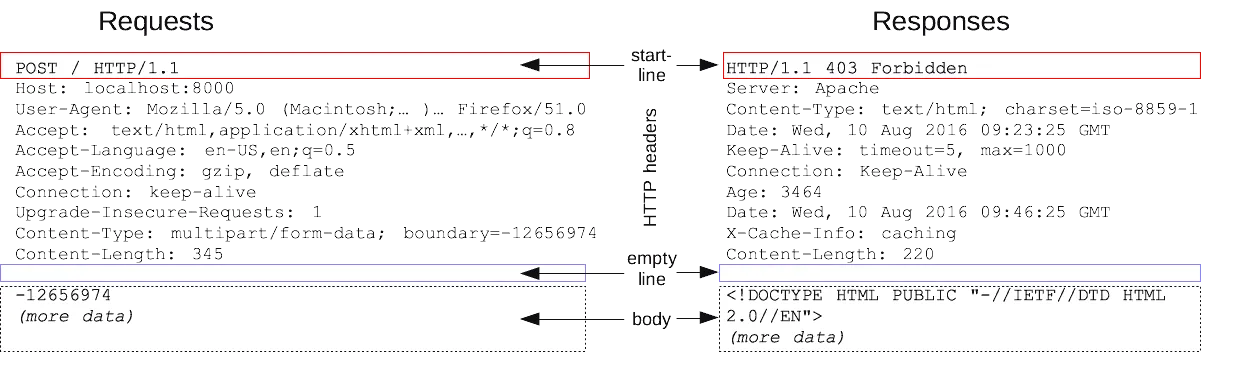 HTTP 요청과 응답은 다음과 같은 형식으로 이루어져 있다.