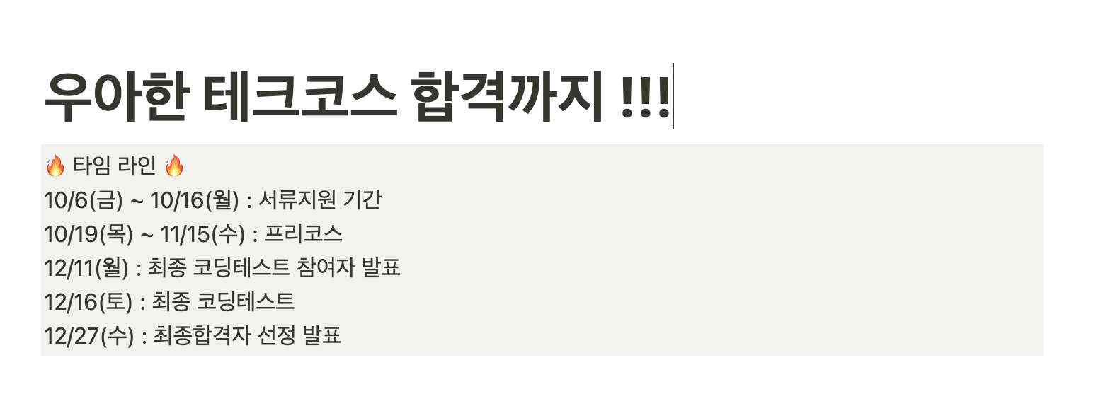 우테코 합격이라는 목표를 세웠고 노션에 야무지게 적어뒀다.