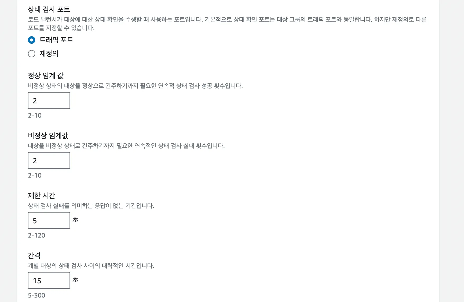 정상 임계값 : 비정상 상태의 대상을 정상으로 간주하기까지 필요한 연속적 상태 검사 성공 횟수