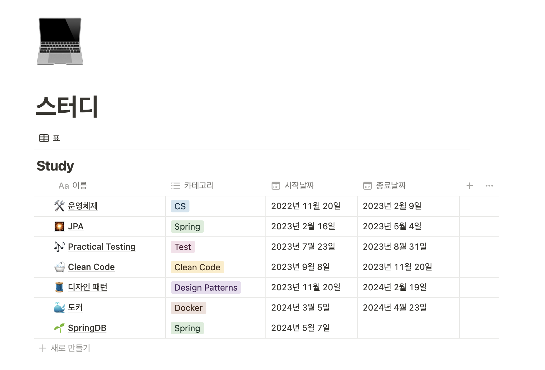 다음주부터 SpringDB 스터디를 새로 시작한다. 토요일 새벽에 RC 피드백을 완료하고 일요일에 스터디 공부를 했다. 오랜만에 스터디 노션을 정리하고보니 진짜 오랫동안 스터디를 했다. 이렇게 오랫동안 같이할만큼 잘맞는 스터디원을 만난건 행운이라고 생각한다. 함께 고민할 수 있는 다양한 질문을 던져주고 적극적으로 생각을 나눠주어서 스터디하면서 많이 배웠다. 특히 개발자적인 사고를 많이 배운 것 같다 👍 너무 무리가 되지 않는 이상 더 바빠지기전까지 계속해서 스터디를 진행하면 좋겠다.