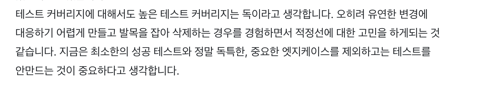 테스트가 유연한 변경에 대응하기 어렵게 만든다는 말에 매우 공감했다.