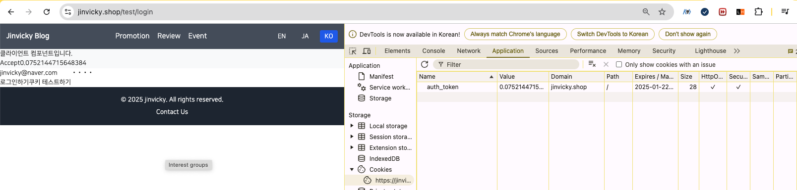 기존 http://jinvicky.shop에서는 쿠키가 새로고침 시 사라지는 이슈가 있었습니다.