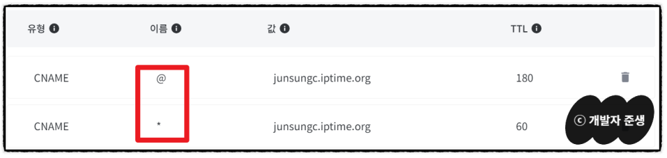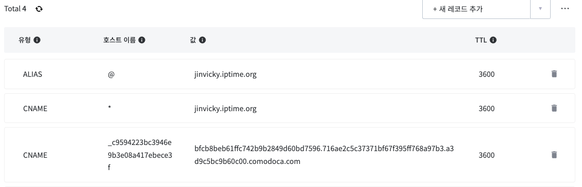 저의 총 도메인 레코드는 이렇습니다.