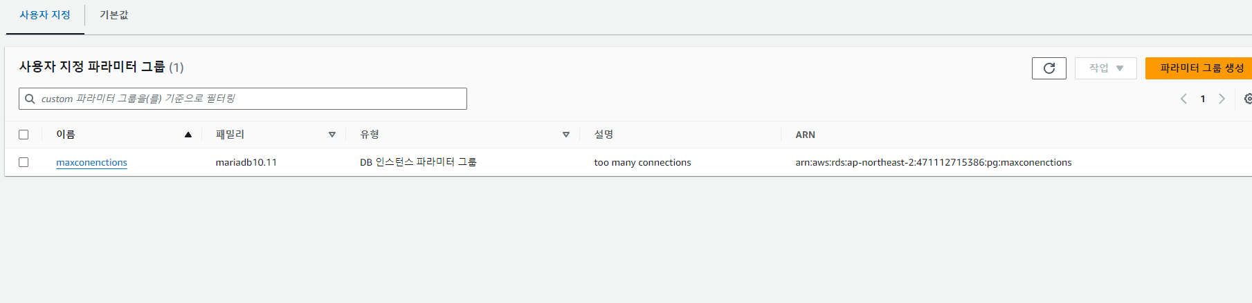 그치만 파라미터 값을 변경하려면 새로운 그룹을 생성해야한다.