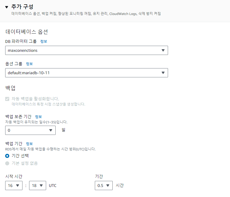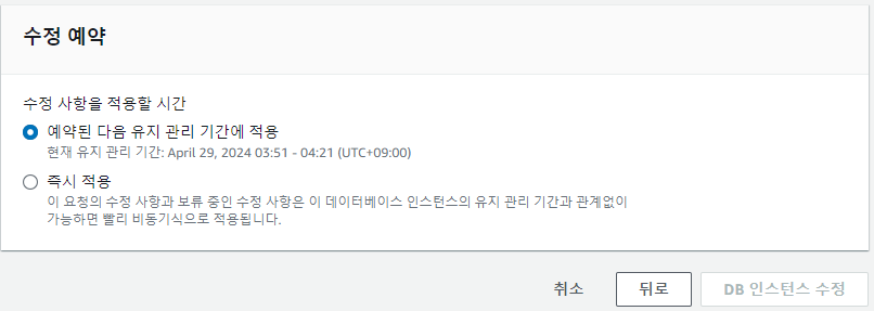 DB 파라미터 그룹을 위의 3개의 파라미터를 변경한 그룹으로 변경해줘야 한다. 그 후