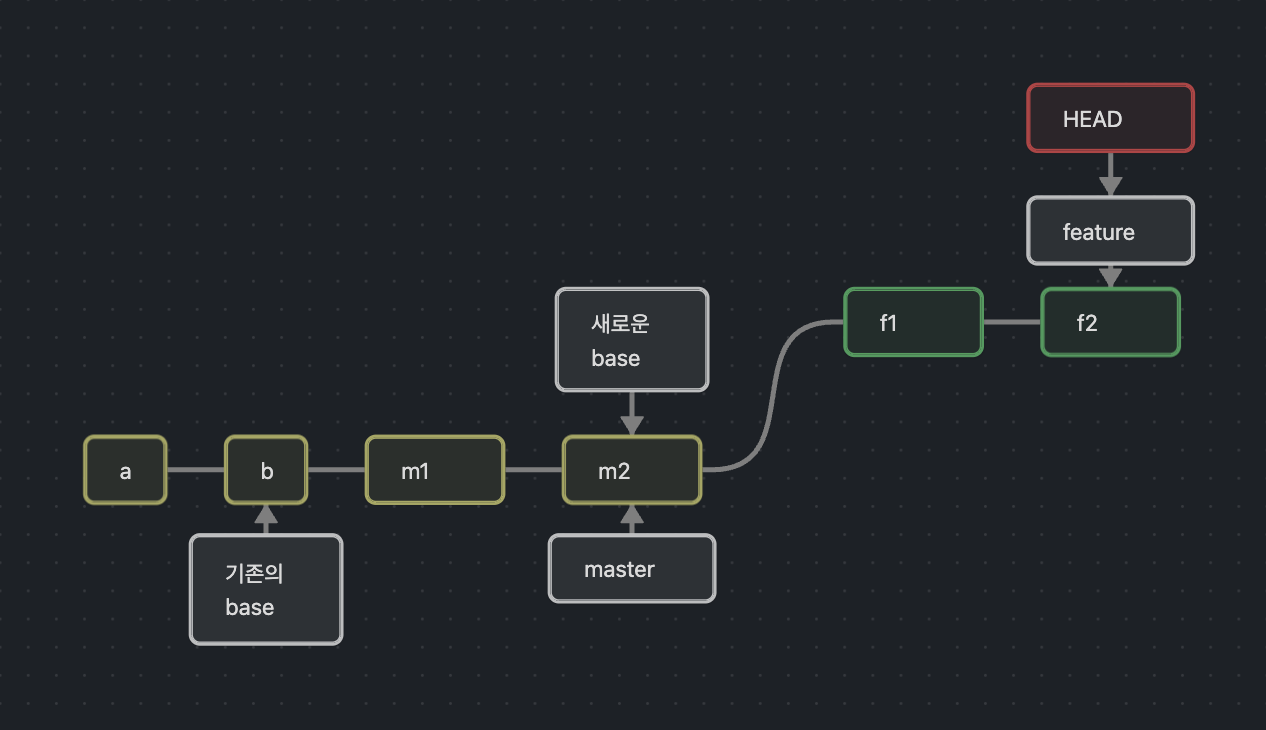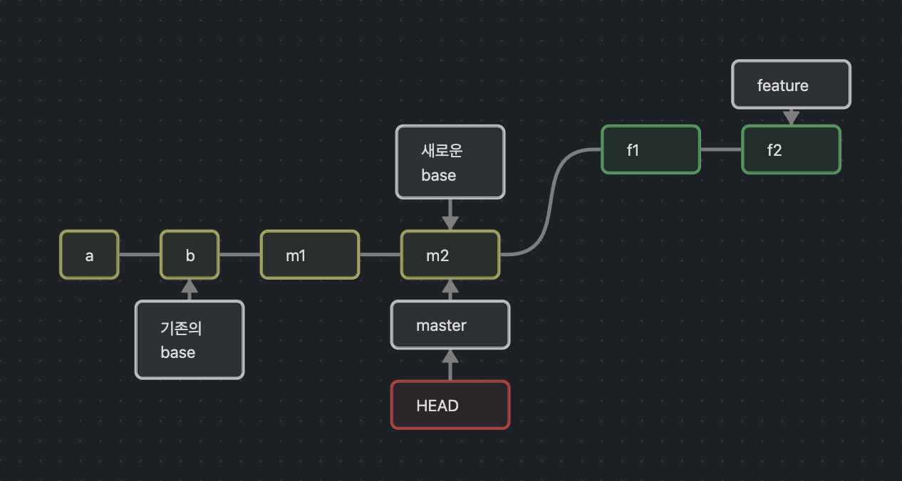 # feature 브랜치의 이력을 master 브랜치의 최신 커밋 위에 재배치