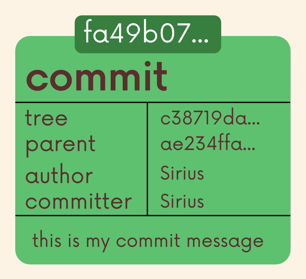 - Commit 오브젝트는 프로젝트의 특정 시점을 나타내며, 작성자 정보, 커밋 메시지, 그리고 그 시점의 디렉토리 구조와 파일 내용을 참조합니다. 디렉토리 구조와 파일 내용은 Tree 오브젝트를 통해 참조하게 됩니다.