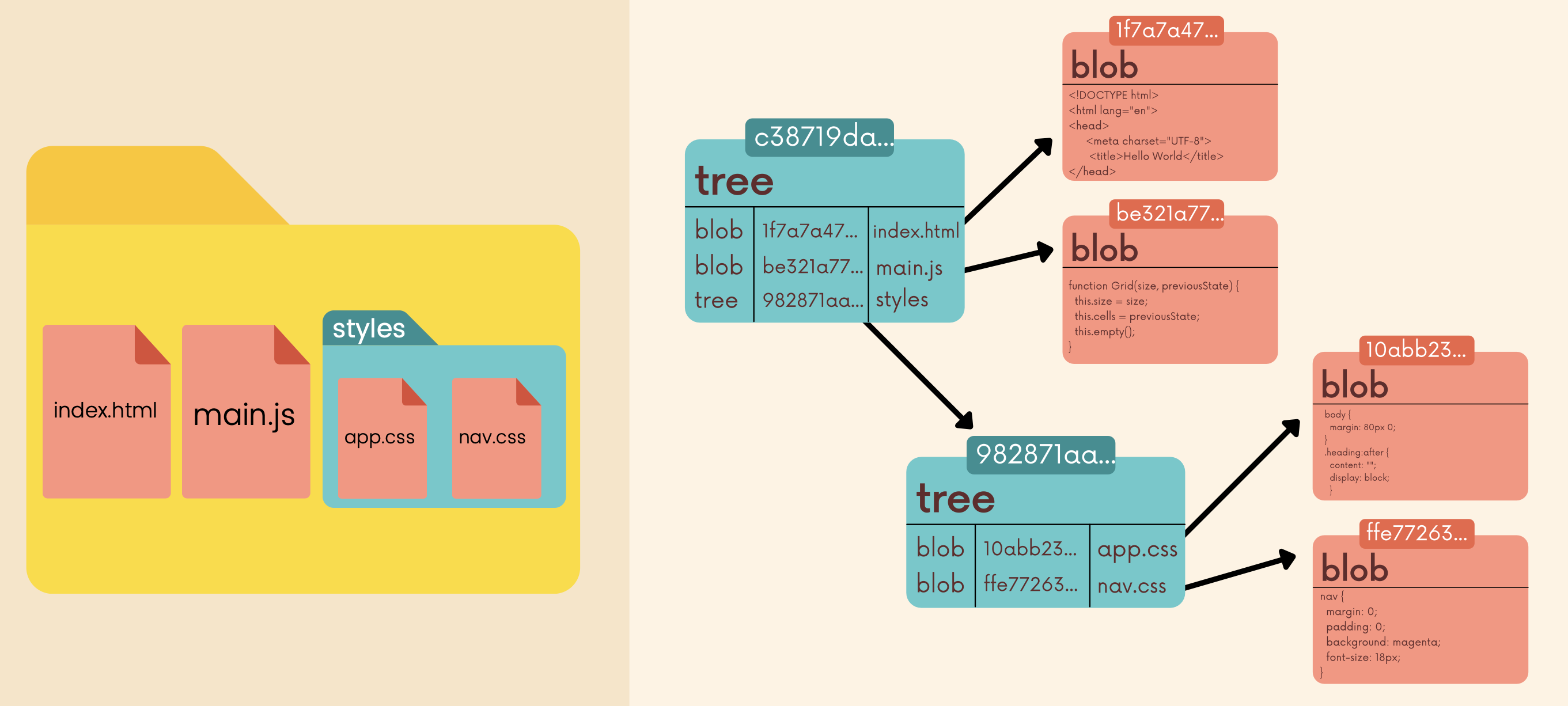 - Blob 오브젝트는 파일의 내용을 담당하며, 각 파일의 내용은 고유한 Blob 오브젝트로 저장됩니다. Blob은 Binary Large Object의 약자로, 각 Blob 오브젝트는 고유한 SHA-1 해시를 가지고 있습니다.