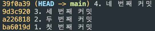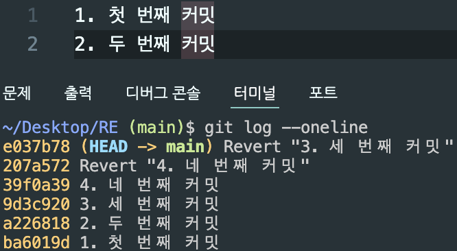 텍스트만 남아 있습니다. 2번 커밋의 내용까지 있어야 할 것 같았지만, revert