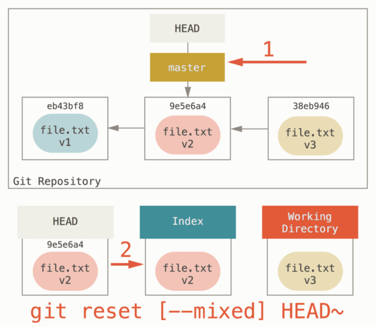 # HEAD를 특정 커밋으로 이동시키고, 해당 커밋 이후의 변경 사항들은 스테이징 영역에서 제거됩니다.