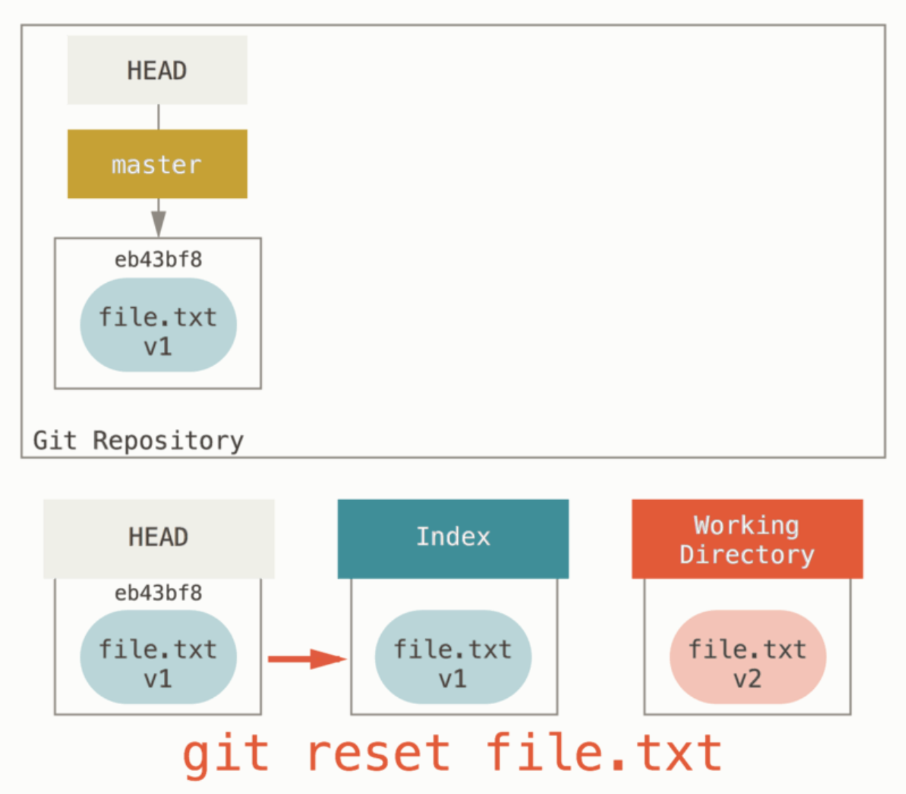 으로 되돌리는 것은 같다. 그러고 나서 Staging Area 를 비우기까지 한다.git commit