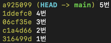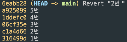 5번 커밋에서 2번 커밋으로 revert를 해보겠습니다.