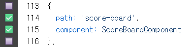 Score Board 문제의 코딩 챌린지로 넘어가 보겠습니다. 아까 확인했던 Angular의 라우팅 테이블이 보기로 주어지고 있습니다.