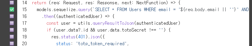 전문은 다음과 같습니다. password는 security.hash로 해시 함수를 적용하여 SQL Injection을 막고 있습니다.