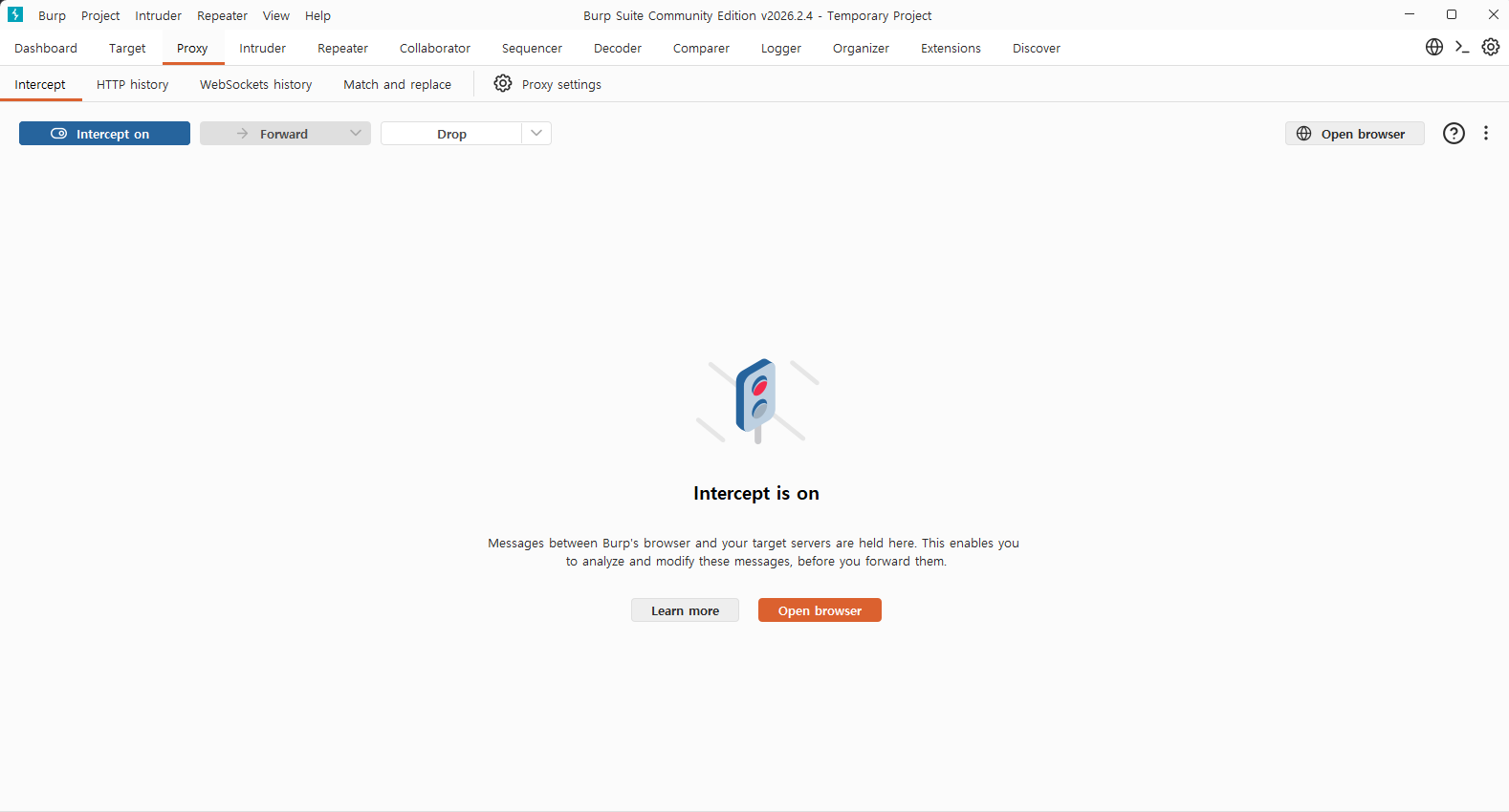textarea 말고 burp suite를 이용하여 POST 패킷을 직접 수정해 조작하는 방법도 있습니다. burp suite를 실행한 뒤 proxy > Open browser를 눌러 패킷을 가로챌 브라우저를 실행합니다.