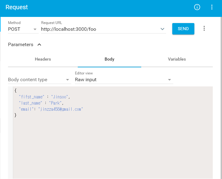 바디에 데이터를 넣어주기위에 데이터를 만들어 주는 앱을 설치한다.