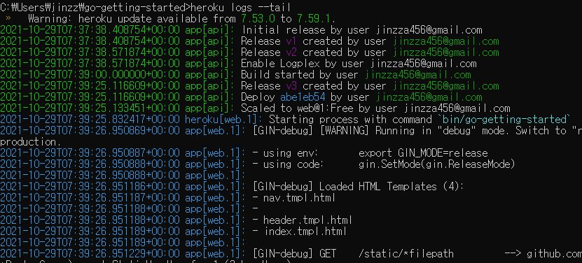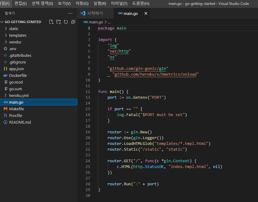 go-getting-started 파일이 실행 되는것을 볼 수 있다.