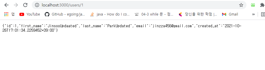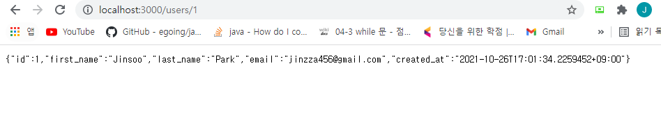 /users/1 페이지에 표시 되는것을 알 수 있다.