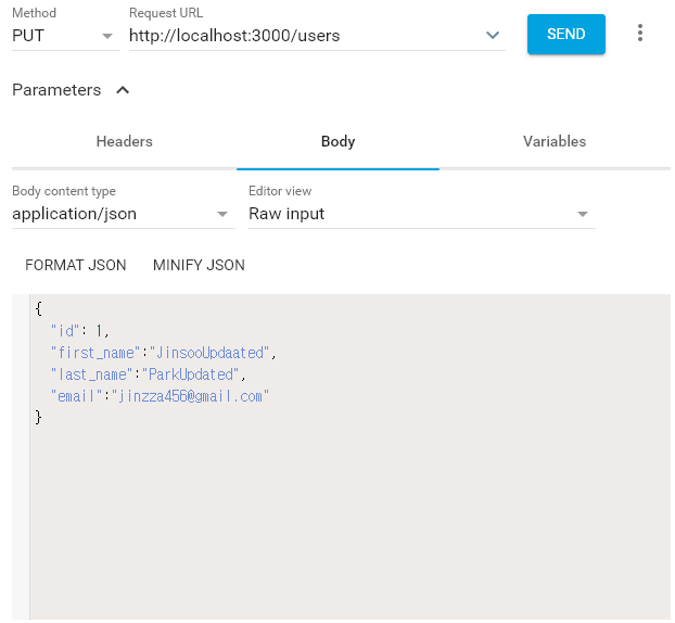 해당 아이디를 입력하고 put 매서드를 이용해 업데이트