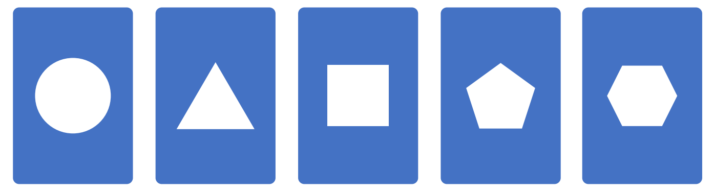 [ 예제 4 ] 다음 카드 5장 중 2장을 선택했을 때 삼각형과 사각형이 동시에 선택될 수 있는 확률은?
