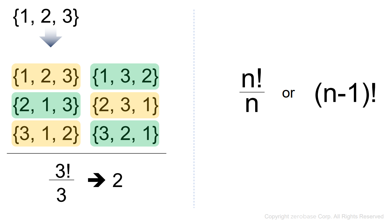 : 시작과 끝의 구분이 없는 순열 n!/n or (n-1)!