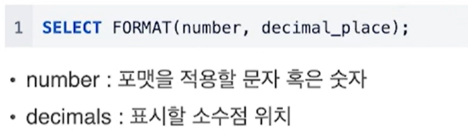(2) 반면 FORMAT은 천의 단위마다 ,를 추가함으로써 값을 문자열(string)로 반환하게 됨