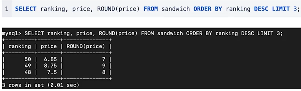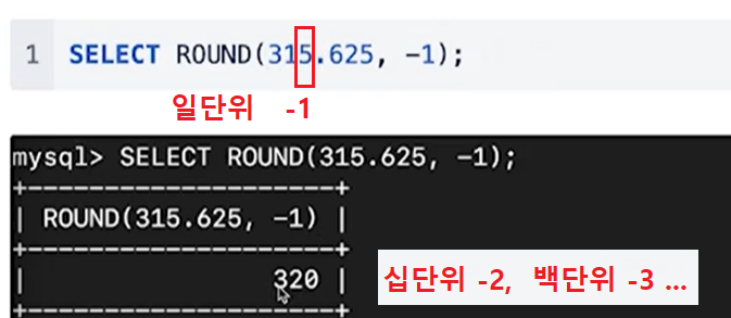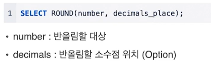 (1) ROUND는 숫자로 된 값만 반환할 수 있음