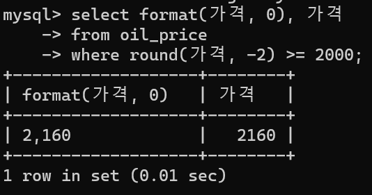 -> where round(가격, -2) >= 2000;