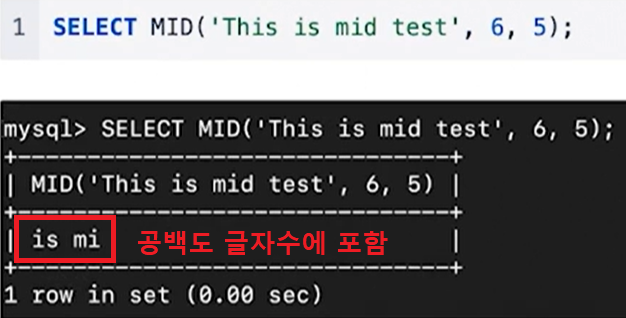 SELECT MID ('This is mid test', -4, 4);